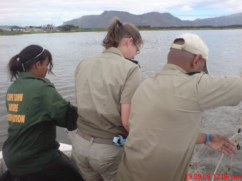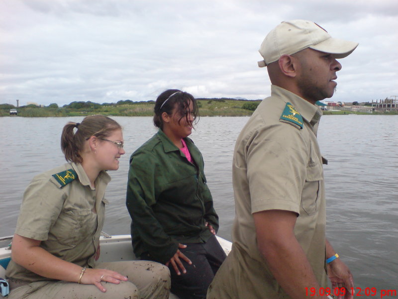 I then saw the nature conservation guys on the side of the vlei chest deep in water. We proceeded to fetch them for some expert advice. They got on board and we chased the bird down with a throw net.