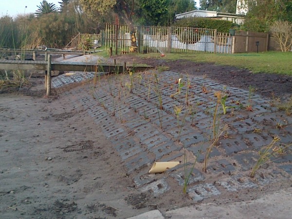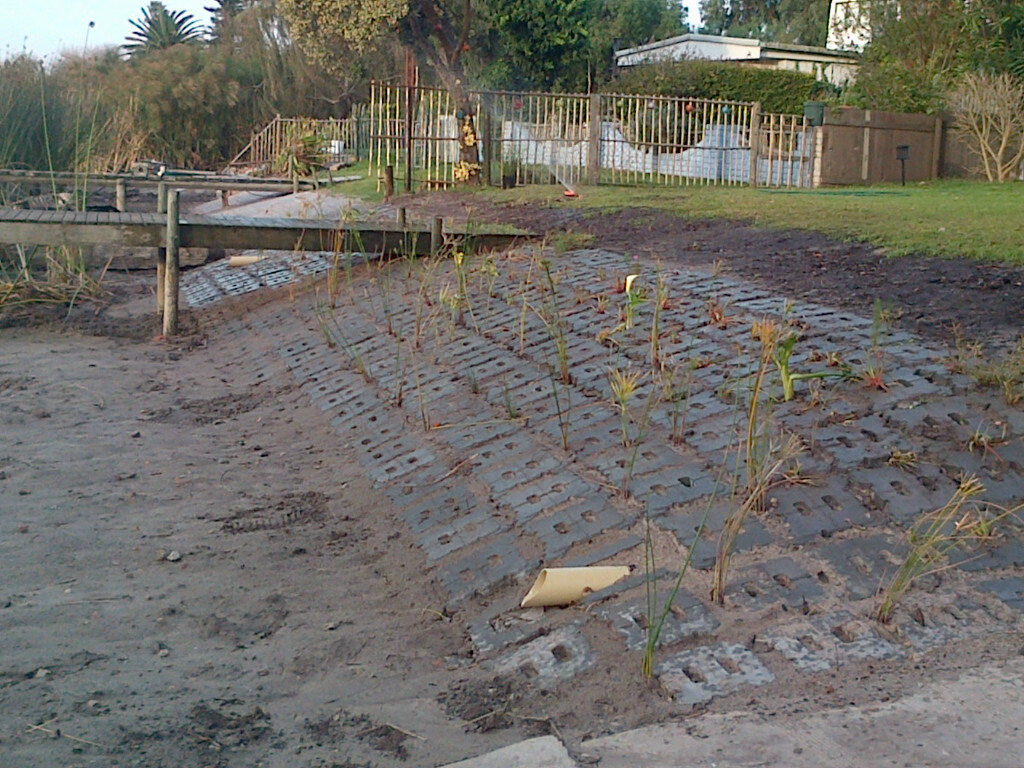 This is the new, approved by Zeekoevlei Nature Reserve Manager, shoreline protection method that has been installed at two very happy Vleibours homes on Peninsula Way. Its mostly green materials, good for wave action, froggies and boat handling NO MORE SLIPWAY REQUESTS…