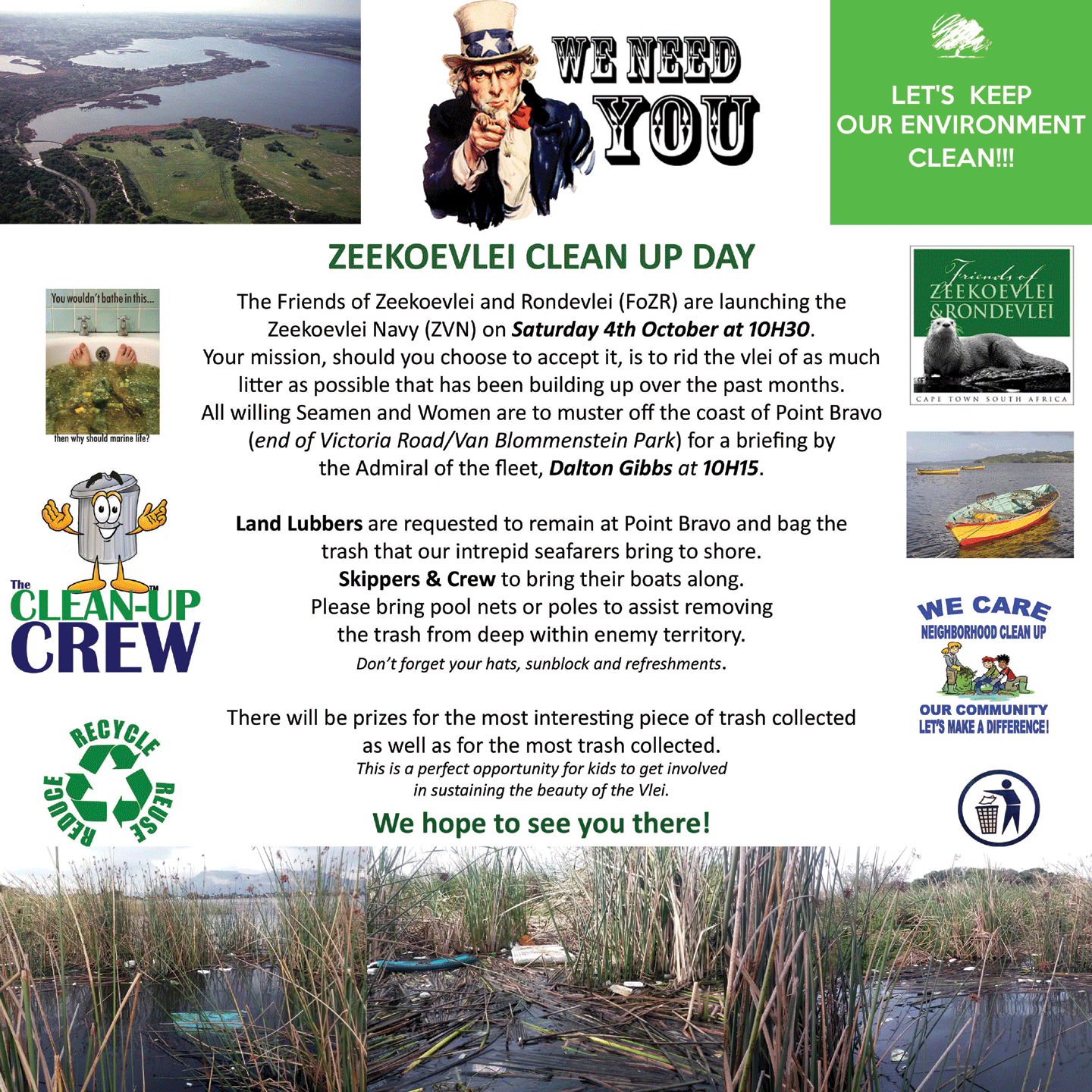 Thanks to all who braved the polluted waters of Zeekoevlei to remove floating litter.