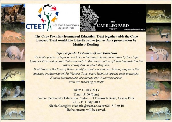 We would like to book two places for the Leopard Talk on Thursday 11 July. Is the Zeekoeivlei Education Centre the building on the left as one enters Strandfontein Sewage Works?