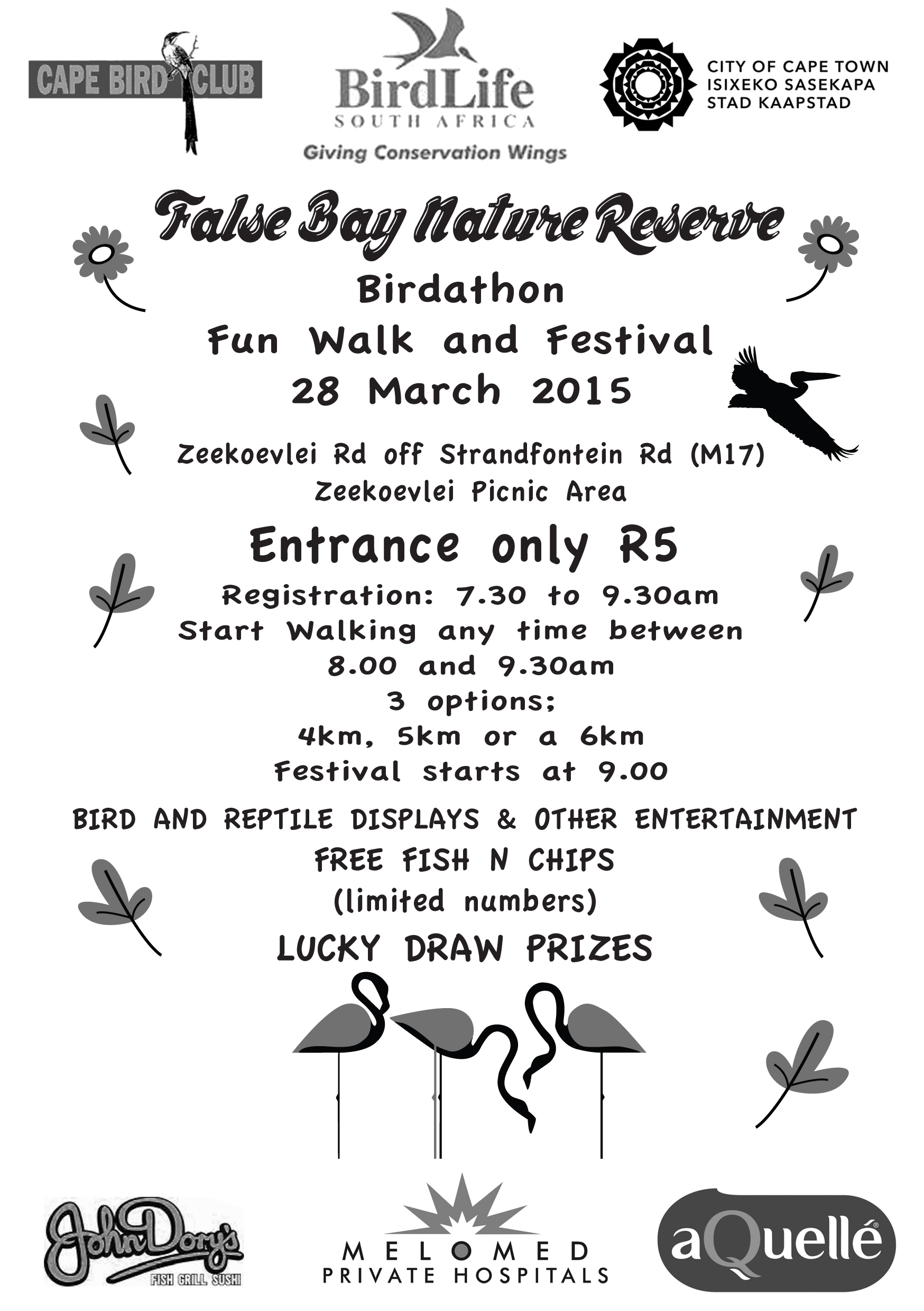 ****Save the Date***False Bay Nature Reserve Birdathon: Fun Walk and Festival***28th March 2015 ** 07h30 – 13h30.